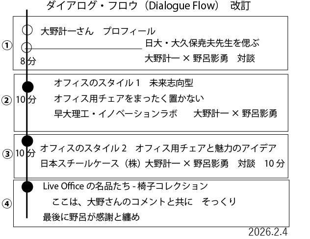 ④は、そのオフィスに置かれた家具と椅子。考え抜かれたものばかり。ここには、大野さんの解説が入ります。