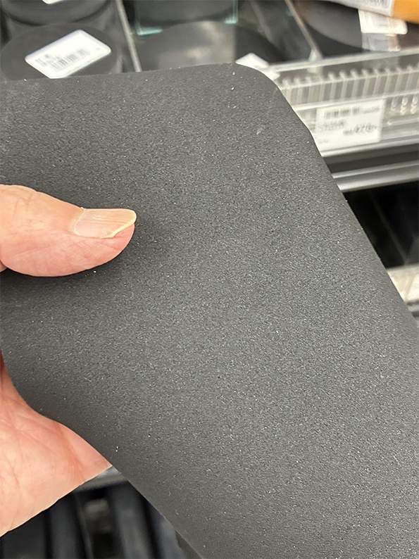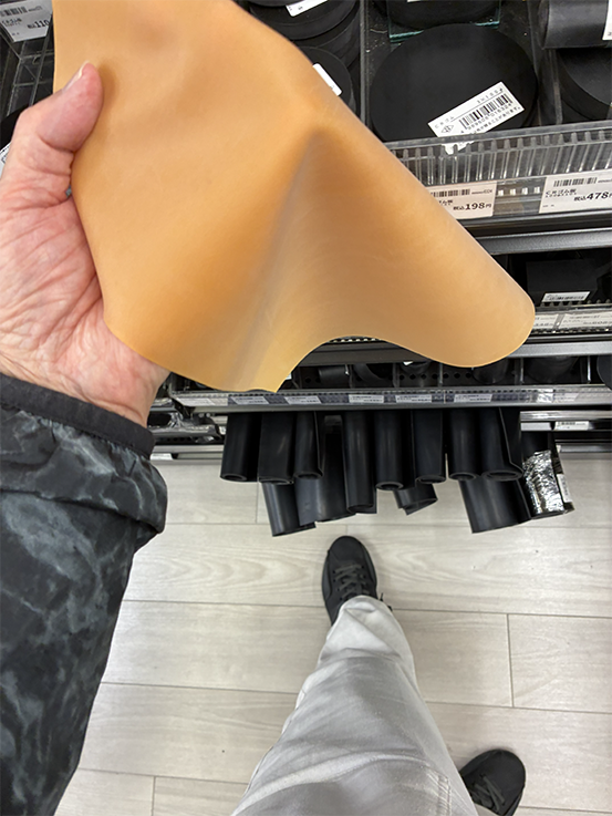 新しい体圧分布シートの目的は、椅子全体の圧力分布を測定することではありません。座面や背もたれの一部分の細かな凸凹を正確に測定することが狙いです。そのため、センサーを貼り付けるシートを選ぶべく、新宿まで足を運び、ニトリとハンズを調査しました。特にハンズでは、上の階に数多くのシートが揃っていました。その中から候補に挙げたのは2種類です。以下に写真を掲載しますので、ご覧ください。