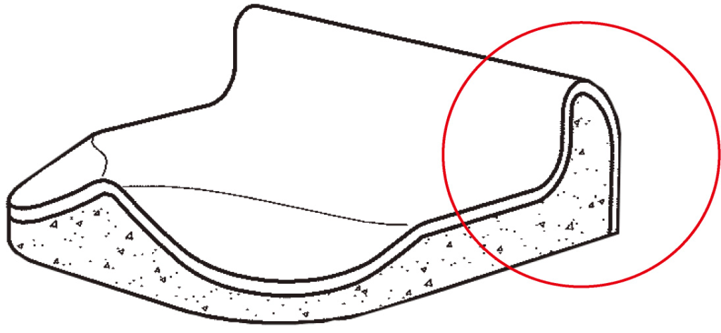 中身 ウレタンフォーム モールドウレタンに似た硬めのフォーム。表面は、家具用シート。製造 神奈川県横浜 オカムラ系 オフィス家具の専門工場 (株)八堂。 先端のサドルの加工が見事だ。